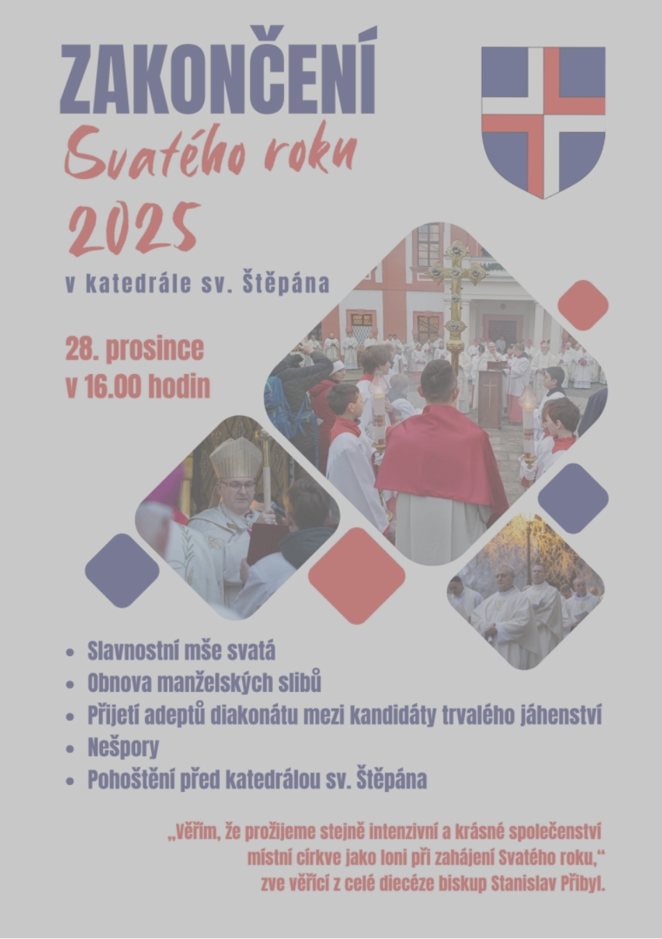 Svátek Svaté rodiny bude pro litoměřickou diecézi letos velmi důležitý. Na 28. prosince od 16 hodin připravuje biskupství slavnostní zakončení Svatého roku 2025. Biskup Stanislav Přibyl zve věřící z celé diecéze na setkání Božího lidu ze severu Čech, které bude podobné tomu, jenž proběhlo loni při zahájení Jubilejního roku.
