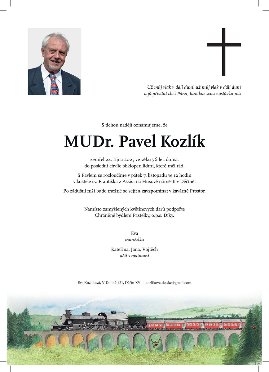 Smutná zpráva pro Děčínsko. V pátek 24. října zemřel děčínský dětský lékař, psychiatr a bývalý děčínský radní Pavel Kozlík ve věku 76 let.